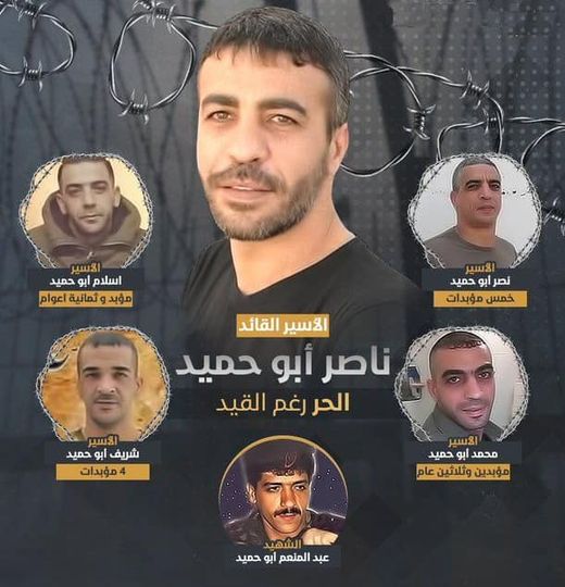 وكانت قوات الاحتلال الإسرائيلي اعتقلت ناصر أبو حميد (50 عاماً) للمرة الأولى وهو قاصر، ثم توالت الاعتقالات عدة مرات، من دون أن ينكسر أو تُثني إرادته إجراءات السجّان، ومن دون أن تتزعزع قناعاته بعدالة قضيته وحقوق شعبه، وفي كل مرة خرج فيها من السجن كان أكثر صلابة وشموخاً، وأكثر نشاطاً ودفاعاً عن وطنه وحقوق شعبه، فظل وفياً للأرض والقضية، ومقاتلاً شرساً في وجه المُحتل ومستوطنيه. ومع اندلاع انتفاضة الأقصى سنة 2000، شارك في تأسيس كتائب شهداء الأقصى التابعة لحركة “فتح”، وأصبح قائداً لها في الضفة الغربية، وقاد العديد من العمليات البطولية ضد المحتل وجنوده ومستوطنيه، وحاول الاحتلال اغتياله أكثر من مرة بعد أن تحول إلى مطارَد، إلى أن تمكنت قوات الاحتلال من اعتقاله في 22 نيسان/أبريل 2002 برفقة أخيه نصر في مخيم قلنديا للاجئين، وتعرّض لتحقيق قاسٍ، وتعذيب جسدي ونفسي، وبتاريخ 24 كانون الأول/ديسمبر من العام نفسه، أصدرت المحكمة المركزية في القدس بحقه حكماً بالسجن المؤبد المفتوح سبع مرات، بالإضافة إلى 50 عاماً أُخرى، وبعد اعتقاله أصبح من قادة الحركة الأسيرة، ومثَّل الأسرى في كثير من المواجهات مع إدارة السجون الإسرائيلية، وكان نداً، عملاً بوصية الشهيد غسان كنفاني: “لا تمت قبل أن تكون نداً”. وما زال قائداً صلباً ومدافعاً قوياً عن حقوق إخوانه ورفاقه الأسرى، ونستذكر هنا كلماته بعد ثلاثين يوماً من إضراب الكرامة في سنة 2017: “ما زلنا نطرق أبواب الزنازين، نصرخ مكبّرين ومهلّلين ومتحدّين السّجان وبطشه وإجرامه الوحشي، وما زلنا نتنفس الحرية والكبرياء، نسير إلى الموت مبتسمين، ونتربع على بطانية سوداء، هي كل ما تركوه لنا، حول كأس ماء وقليل من الملح، نغني للوطن ولربيع الانتصار القادم. عن أجسادنا لا تسألوا، فلقد خانتنا وتهاوت منذ أيام، أمّا عن أرواحنا وإرادتنا فنطمئنكم أنها بخير، صامدون كما الصخر في عيبال والجليل، أقسمنا اليمين على أن نواصل حتى النصر أو الشهادة، وعاهدنا أرواح الشهداء ألّا تكون هذه المعركة إلّا شمعة انتصار نضيئها بأرواحنا وأجسادنا على درب الحرية والاستقلال”.