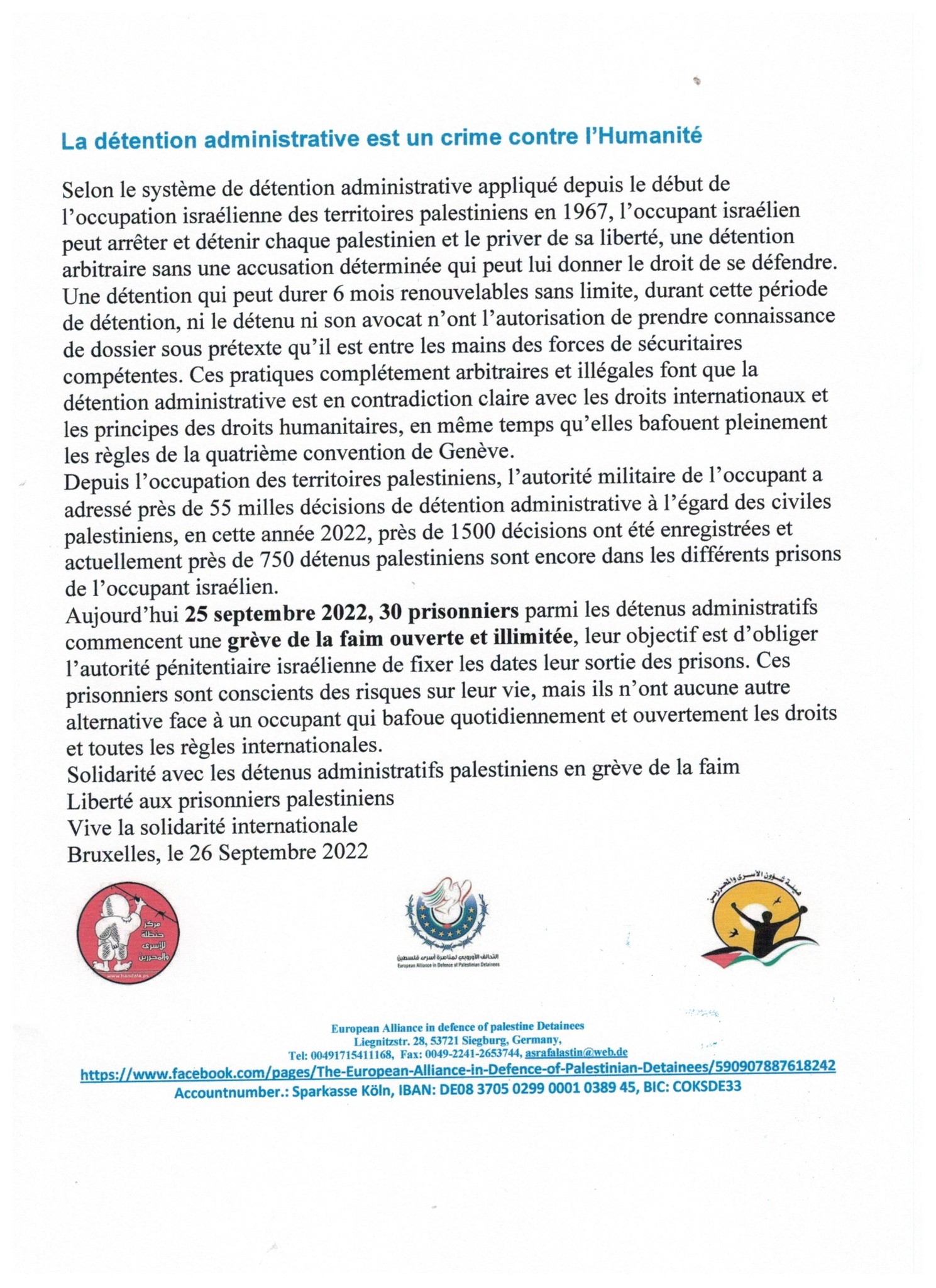 European Alliance in defence of palestine Detainees