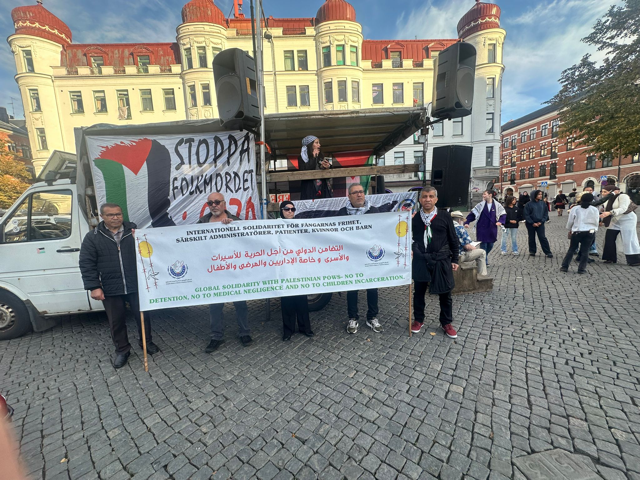 شارك في المظاهرة عدد من المؤسسات السويدية والعربية، وفي مقدمتها: التحالف الأوروبي لنصرة أسرى فلسطين، “أمهات من أجل فلسطين”، “أطباء من أجل فلسطين”، “المجموعة الفلسطينية”، “المساواة”، “أنقذوا أطفال غزة”، إلى جانب مؤسسات أخرى داعمة بقوة للقضية الفلسطينية.