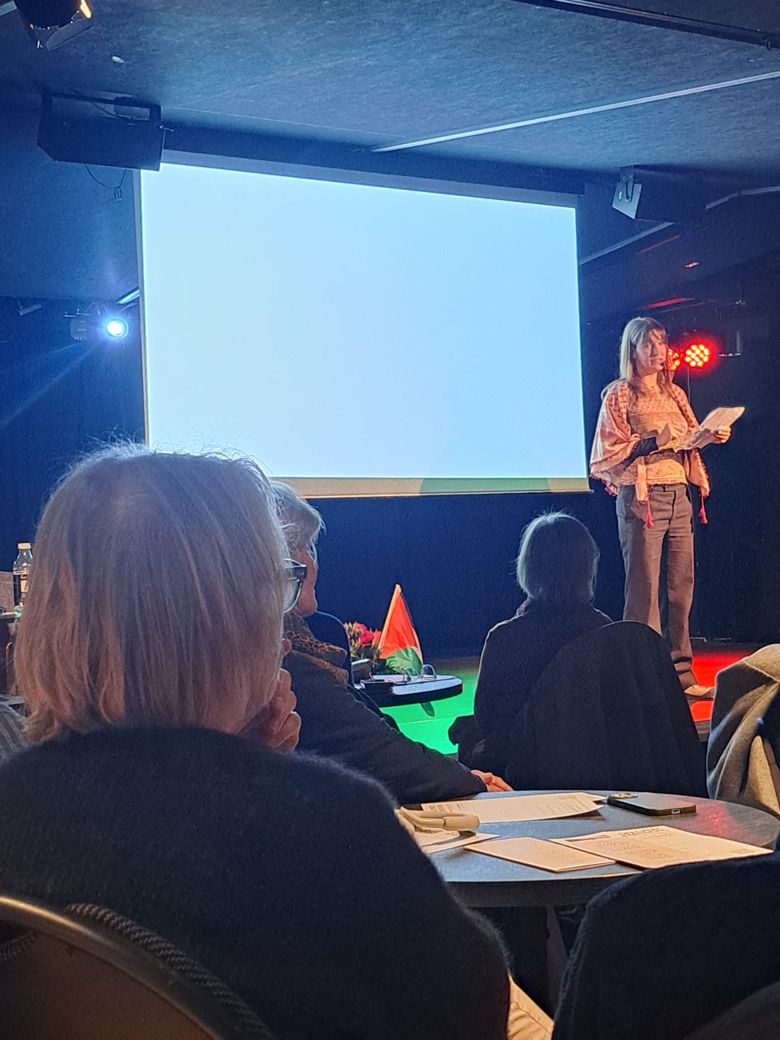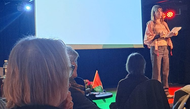 وفي هذا السياق ،افتتحت الندوة ،الممثلة النرويجية ، “ريجين لونا استروب”بالوقوف دقيقة صمت على أرواح الشهداء في فلسطين ولبنان وإيران ،ثم تلت شهادة خطية من أحد أطفال أبو ديس ،شرح فيها ظروف اعتقاله وتجربته في المعتقل ،وأساليب الترهيب النفسي والجسدي التي تعرض له .